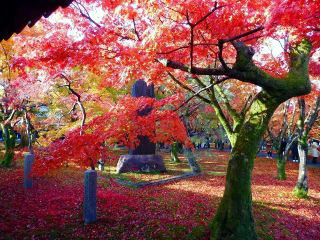京都市内の紅葉の名所では、美しい紅葉が眺められます。(11月下旬~12月)